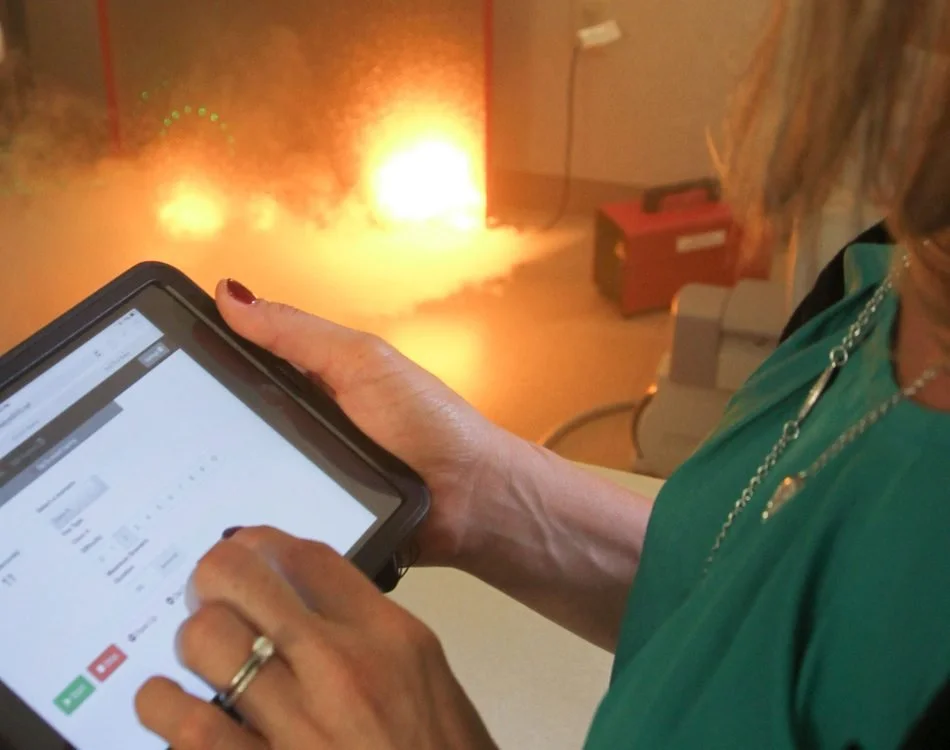 This in depth technology allows us to simulate A, B, C, and E fire classes, including their characteristic sounds and behaviours, i.e. combustible materials, flammable liquids, flammable gas, and electrical fires. The system features LION Air/Water SmartExtinguishers® or laser extinguishers that interact with sensors embedded in a fire simulation panel. The BullsEye system’s sensors detect where the student is standing and the effectiveness of their fire fighting technique.
